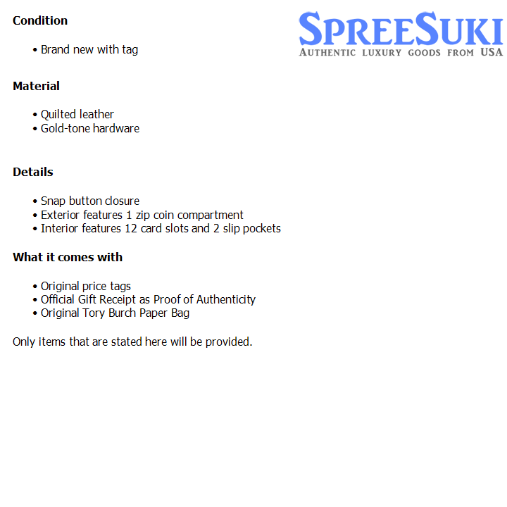 Tory Burch Wallet With Gift Paper Bag Willa Quilted Leather Slim Envelope Wallet Black # 89490