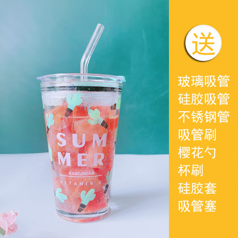 Good Product Straw Cup Adult Portable Children's Milk Cup Ins Internet Celebrity Girl Cute Water Cup Snoopy Scale Glass